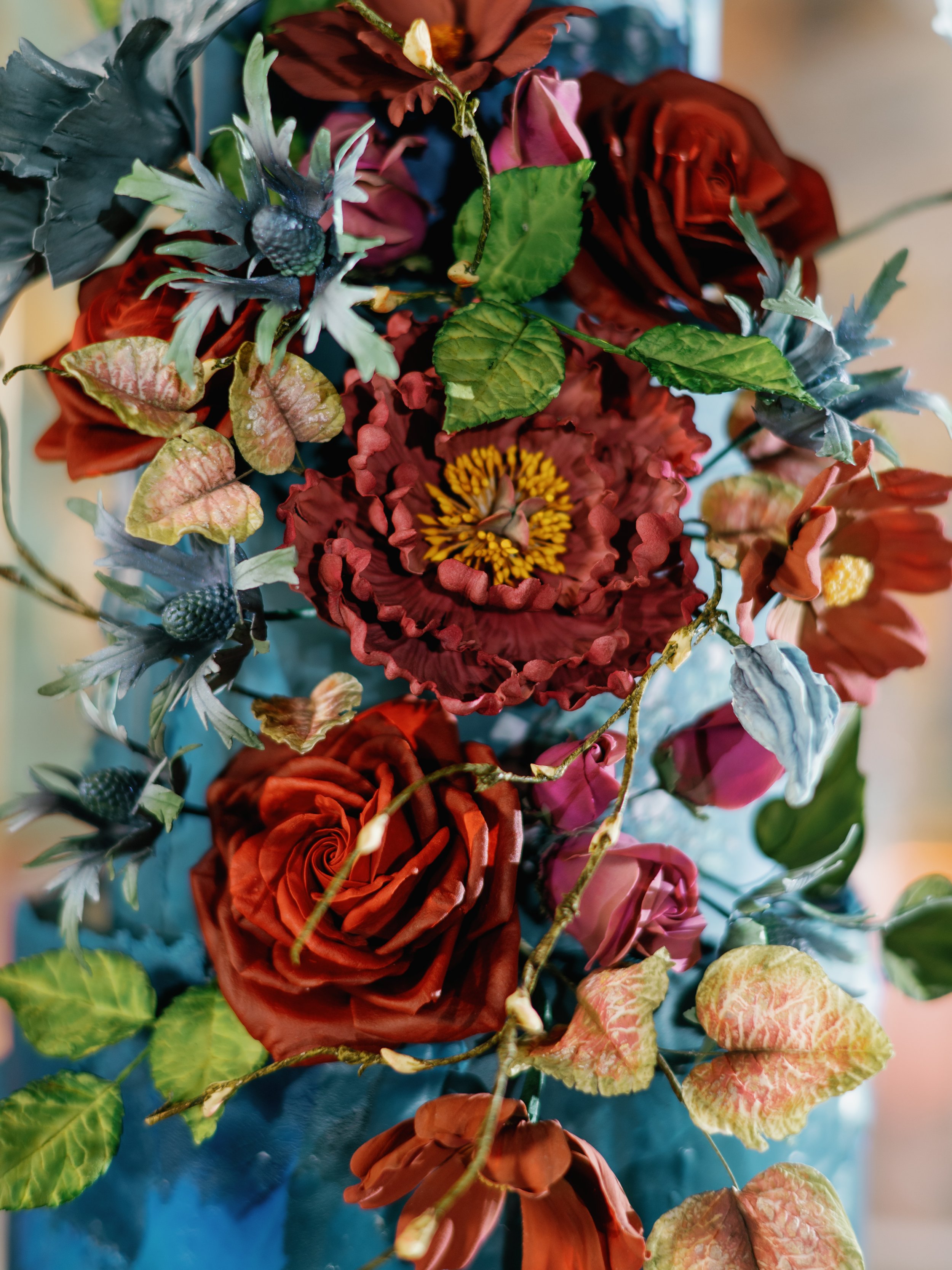 Sugar flowers: All of the flowers you see in the galleries below are hand made by us, one petal at a time. They are not fresh flowers plucked from a garden or bought at the flower market; they are completely hand sculpted wonders. We are proud to keep this extraordinary art form alive.