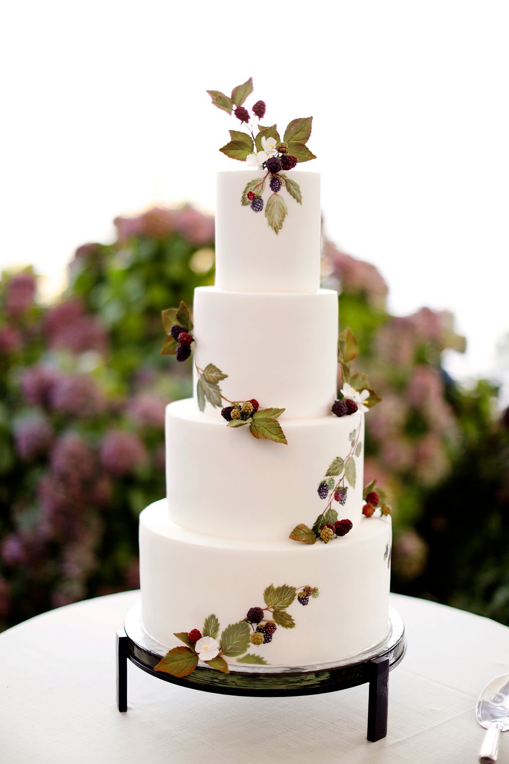For events with more than 120-150 guests, we often provide an undecorated kitchen cake for any additional servings required. Alternatively, you could simply choose to have a very large cake on display (i.e. four, five, or even six tiers), depending on your guest count and the preferences of your catering team.